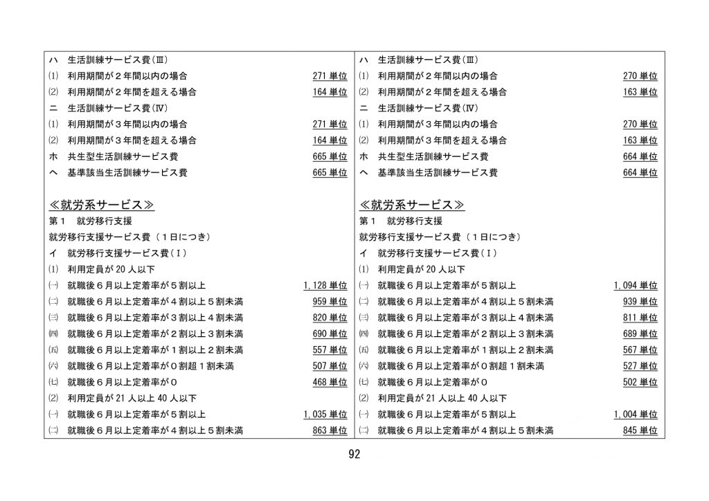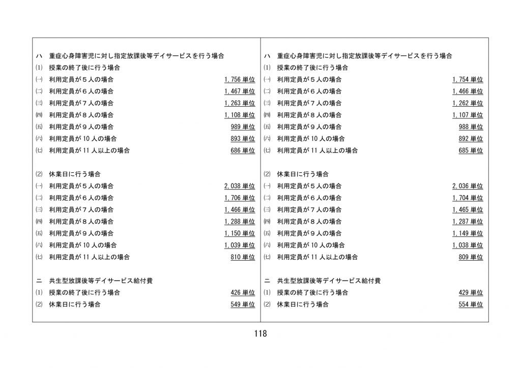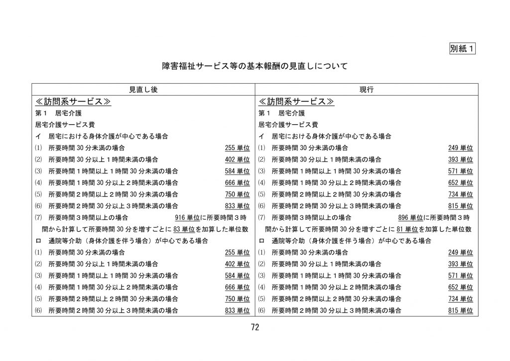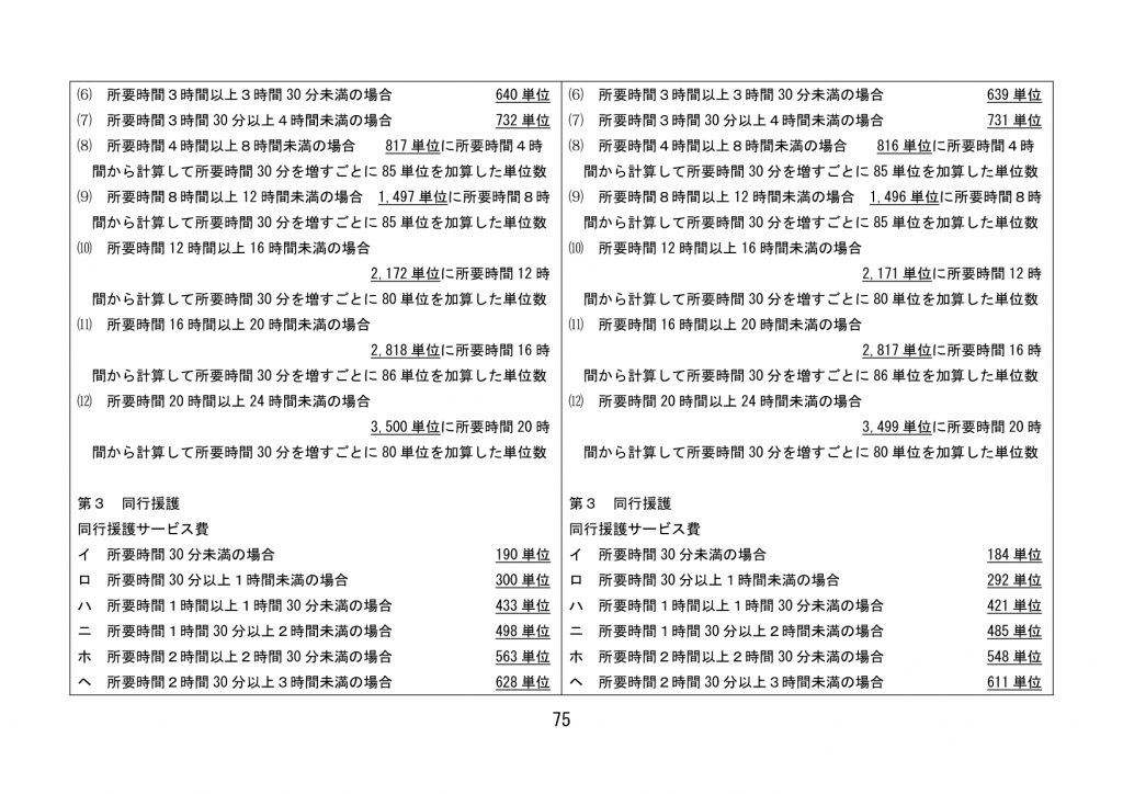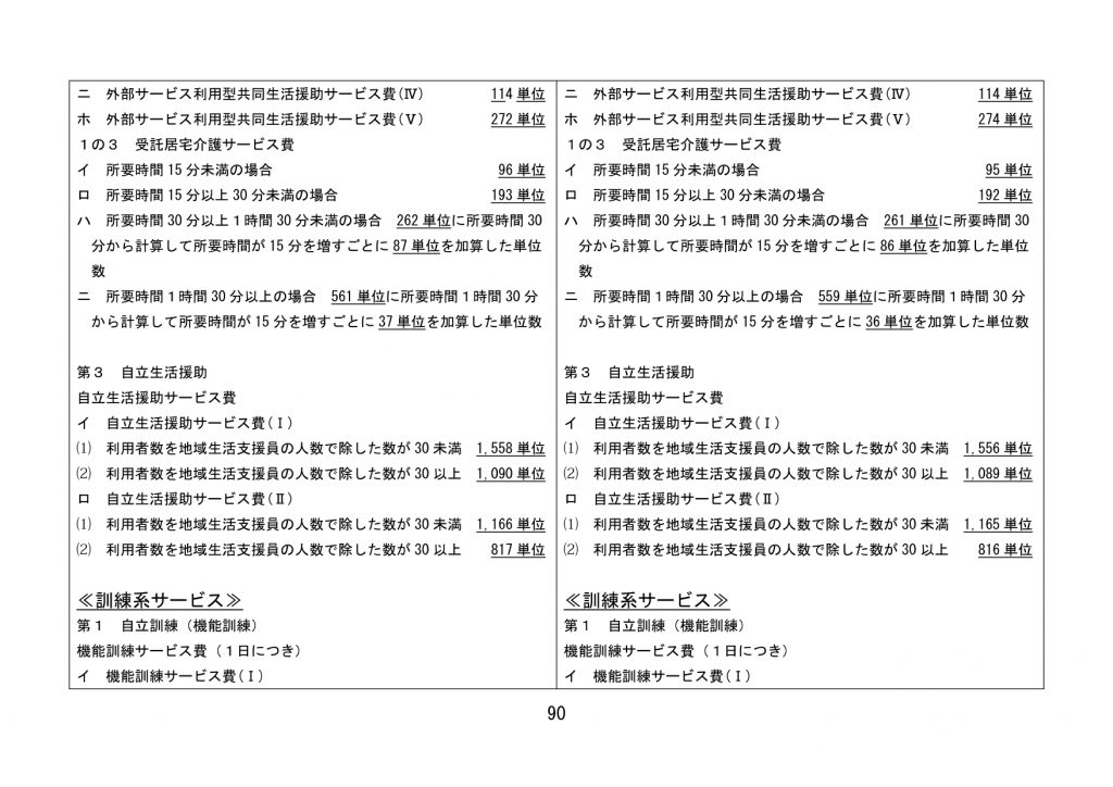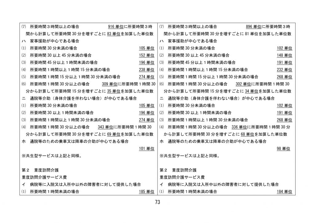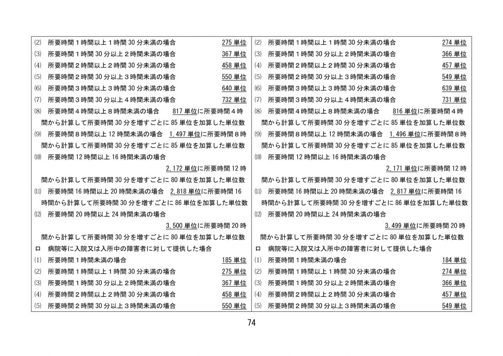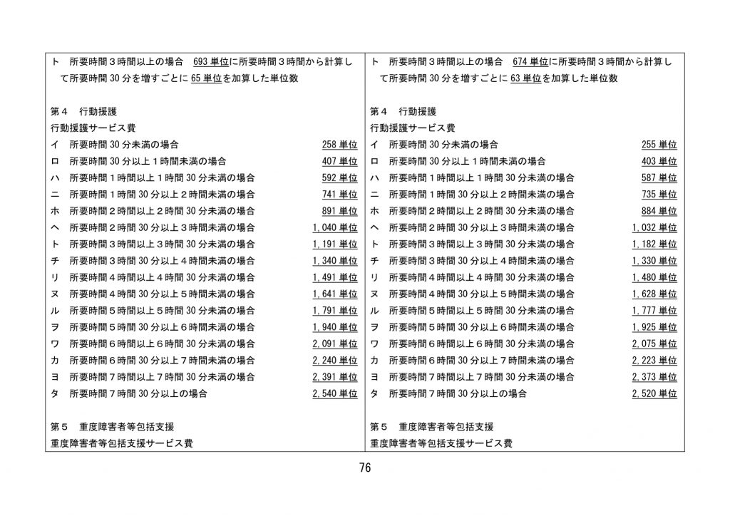 見直された単位数【全サービス】